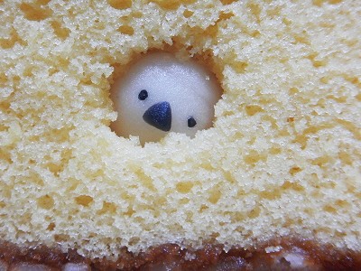 それにしても、コンペイトウくらいの大きさでしかない柔らかめな練り切りを、こんな風にカステラの生地の中に埋め込む作業というのもある意味すご技じゃないかなあ。