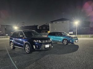 その、空と海が出逢う空間の、闇とは異なる色あいのダークブルーが、現在所有しているV6-2000ccのエスクードです。サイドパネルには、波しぶきのつもりで、見栄っ張りのグラフィックを描き、1号車のヘリー・ハンセンとのつながりを持とうと考えました。