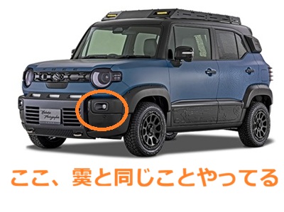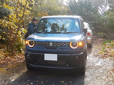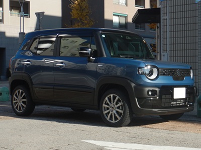霙がコーディネートした(といってもフォグランプベゼルをブラックアウトしたくらいですが)「せぐろさん」ことクロスビー青/黒車体に対して、スズキアリーナ岐阜南が試乗車を白化粧させた「ホワイトスタイル」。テールゲートには北極熊バッジをあしらっています。さしずめ「しろくまさん」と言いたいところですが、それなら白車体ベースでやらないとわかりにくいよね。霙は本当のところ、このガーニッシュの白い部分をマットブラックにしたいのだそうです。