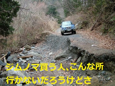 蛇足で書きますけど2点目の写真、現在はエスクードなどでは太刀打ちできないほど土砂と大岩で埋まっております。ランドクルーザーでも乗り越えられないくらいです。そのランクル、この道幅でも切り返しで引き返していけます(動画を拝見しました)。持論というほどじゃありませんが、乗っていない車のことは軽々しくあれがダメこれがダメと言えるものではなくて、オーナーこそが苦言を言える立場だと考えます。
