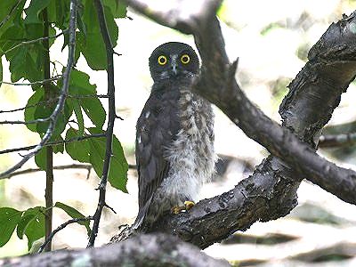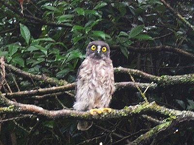 先日の深夜、つくばーど基地前面道路でひょこひょこと動いている丸い物体を見かけ、こっちはクルマだし踏んだらいかんとしばらく坂道に停車して様子を見ました。アオバズクの幼鳥です。といっても巣から出てくるころには親鳥並みの大きさになってるんですが、出てきたばかりでろくに飛べない。巣があると思われるクスの木の上から自由落下の最中に羽ばたきを覚えているけれど、揚力を得られず着地してしまった感じでした。