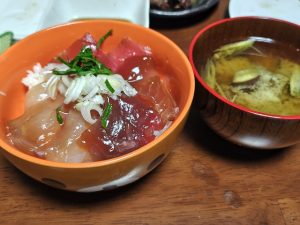 「オルカ鴨川FCという女子サッカークラブがあるんですよ。そのチームを応援してまして」という、なるほどそういう持って来方だったのかと得心。でもなんとなく、大きな海老天のそそり立つ様子はシャチの尾ひれをモチーフにしているのかもしれません。天丼のつゆは好きな分量をかける仕組みで、好みの味付けで美味しくいただきましたが、今回軍配が上がったのは素材の新鮮さで攻めてきた刺身盛り合わせでした。これ一人では食いきれねー(否、完食しましたよ)