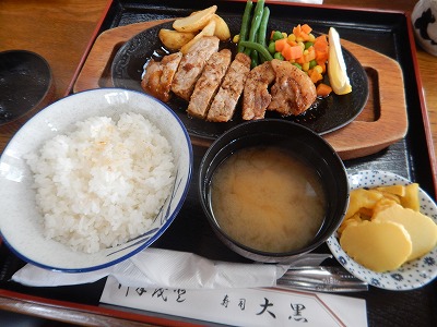 昨年、とんかつ系から横道にそれてポークソテイ定食を食ったらこれが肉の素性と丁寧な調理がよく分かる逸品でしたが、なんでかデミグラソースがかかるのか謎でした。ハンバーグものはやっていないから、これのためにソースを用意していると思うのですが、より美味く食うなら醤油系か塩こしょうかなあと聞いてみたら「生姜焼き定食あるよ」と教えていただき、生姜焼きとなるとバラ肉か、それもいいなと注文したら、ポークソテイ定食のバージョン違いでした。これだっ!な満腹と満足。