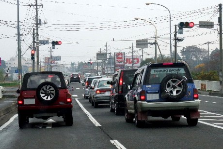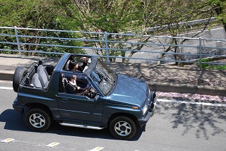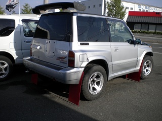 写真2は、足回りを変えてすぐの試走。車高が上がっているのかいないのかよくわからない写りですが、けっこう上がってます。この時点ではNONNONさんの01R並みの屋根ラインだったはず。周りのエスクードがみな足回りを変えているため、ようやくローダウンに見えなくなっただけという(笑)