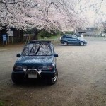 4日朝、フジ・オートに出かける途中で当たりをつけておいた桜のスポットは、曇天の空模様のためにことごとくNG。最後の最後で本命としておいたお寺の境内、正確には駐車場であれば、空を写し込まずに撮れるだろうと思っていましたが、脚立を積んでこなかったばっかりに、思ったような高さがとれず仕舞い。