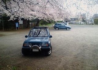 埃と花粉落としはやっておいたけれど、19年選手の車体は、景色の写り込みも寝ぼけたようにしか再現できない。後ろの方に停まっているFISリミテッドなんか、ぴかぴかできれいに満開の桜を映し出していて、うらやましいことこの上ないです。