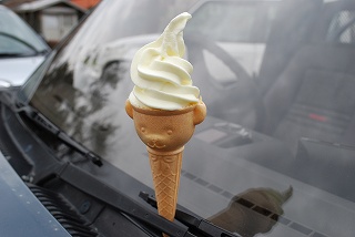 ソフトクリームでありながら、ジェラード風に仕立てた、ほんのりさっぱりとしたレモン風味。さらにコーンまでこぐまであるという懲りようです。うわさによると、お店の中ではクマが働いていて、ソフトをひねってくれるという話ですが、残念ながら時間の関係でそれは確認できず。ほとんど食い逃げ状態で、那須をあとにします。