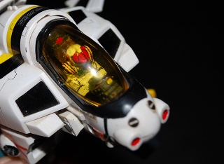 いまさら超時空要塞マクロスの、またしてもの話ですが、2010年5月あたりだとまだ第一次宇宙大戦が終結したばかりで、地球大気浄化の真っ最中で、新統合政府が樹立された頃なんですね。マクロス年表を見てみると、これらはテレビ版がベースのようにも見える。すると、一条輝はロイ・フォッカーが使っていたスカル1をそのまま譲り受けていて、パーソナルカラーも黒とイエローのストライプと解釈したくなります。