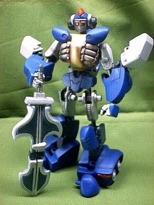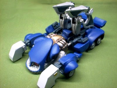 なぜ最低限の「線」と「面」かといえば、このグランゼルは、番組の設定に従い、「グランカー」への変形を、一部パーツの差し替えによって可能とした造りだからなのです。一部ということは、それ以外の部分にはポージングも含めた可動機構が備わっているというわけで、おそらく、知る限りにおいて、差し替え式完全変形グランゼルは、これが世界初(おおげさ?)の造形であると思われます。