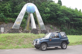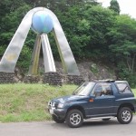 実は七時雨山は東北道の安代インターからほど近く、位置関係としては秋田県と青森県に近接しているという点で、ちょっと遠いのかなと思っていました。ところが安代インターまで来てしまうと、国道282号で15kmも走れば、この地球儀にたどり着いてしまう。地球儀まで来ると今度は、滝沢村のでっかいスイカを見たくなってそのまま松尾八幡平にも西根にも上がらず、もちろん滝沢インターもスルーして、ちょっと走るとスイカのところに行けてしまう。