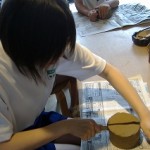 一つの行燈の片側ずつを二つの学校で制作するという手法で、相手が何を描いてくるかわからないという条件下、美術部ではスタッフのブレーンストーミングでデザイン案を出し合い、基本路線は霙が提案した「竹取物語」が採用され、あとひとりのお友達による四季の花や山野のデザインと組み合わせて、夏休み前半の部活動に総力戦で臨んだとか。はからずもディレクターとなった霙にとっては、これまで扱ったこともない大きさの和紙に、仲間と共同作業で絵を仕上げていくという日々が続いていました。