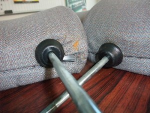 まー、17年も使っていれば劣化もしますわね。使用時に頭をゆだねると妙な捻れ方をしていました。何かあってヘッドレストをいじる度に、シートに黄色い粉がどっさり。「何か方法って・・・交換するしかないですよねぇ?」って話をアニさまにしたのは、結構前の事だったと思うんですが。「ヘッドレストを入手したので、届けますよ」と連絡をもらった時は「覚えててくれたのね!」と、ビックリしました。(質問した本人、メールもらうまで忘れてました・・・)のまちゃんから元のヘッドレスト外して、カバーを付け替えて、取り付けて。ああっ、付け根がシッカリしてる(嬉)これで新月サンが頭をもたせかけても大丈夫(笑)これからよろしくね♪大切に使わせていただきます。