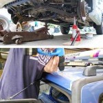 初代モデルにおけるサスペンションの交換は、もはや彼らにとっては定食メニューの域です。四輪全部だから人手があったほうが良いかなと思いましたが、人手も十分、腕前も十二分で、出る幕がありません。今回はさらに、板金から塗装にまで(塗装は事前完了していた。板金は別部分)仕事が拡張されており、いったいこの先、どこまでやっちゃうんだ?という勢いです。