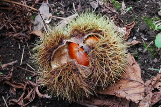 ヘルメットまでは不要ですが、自分の頭上に落ちてくるイガをよける反射神経は必要です。あとは軍手と長袖と運動靴で装備は事足ります。収穫のあと、煮て食うか焼いて食うかまではケアできません。栗ご飯一回分くらいは採れるかな・・・