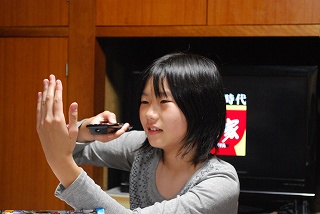 この距離だからできるワザなのか、この距離だったら手をかざさなくてもできるのか。後ろ向きでチャンネルを変えてみる実験。本人は「赤外線が手のひらに当たる感触を知りたい」という探究心があったらしいです。そういうところ(感性)は、たいへんいい感じに成長している。目下、就職希望先が成原万能工学研究所だという話ですが、周辺からは「その前に高校高専に進学してロボコンに出るのだ」とはっぱをかけられている、成りたての13歳。