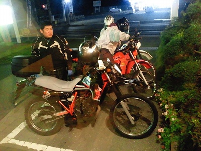 あとまわしになってしまいましたが、先週の土曜日のこと、仕事から帰ってきてようやく晩飯だというところに、狼駄ことシン大尉から電話があって、近所のファミレスに立ち寄るというので、ついさきほど車庫に入れたBLUEらすかるで駆けつけてみれば、ホンダMTXばかり3台。県北までツーリングにでかけてきた帰り道だということでした。土曜日の日中は小春日和でツーリング最適だったでしょうねえ。