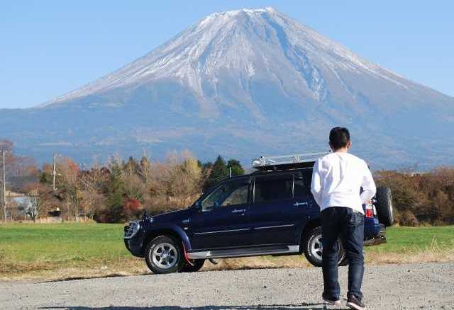 しかしこの撮影地、国道沿いです。振り返ればひっきりなしに車やバイクが往来しています。ついでに言えば、富士山側には民家や構造物があるのですが、やりようによってはそれらを被写体そのもの(ここではグランドエスクード)で隠してしまえば良いので、重宝に使うことができます。なにより国道の路肩に駐車して往来の邪魔になってしまうリスクが無い。