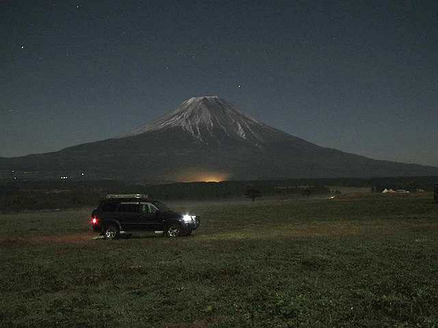 左上に掲げたものは、ふもとっぱらでの夜間撮影版。月明かりの効果です。画質が荒れているのは、送られてきた時点でサイズ・容量とも落とされているからです。ギャラリーに使わせてもらおうかどうか考え込んだ末、雄大さで昼間の撮影を採用しました。