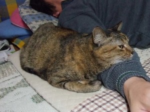 「ちょーどイイところに枕があったニャ」と、思ったかどうか・・・