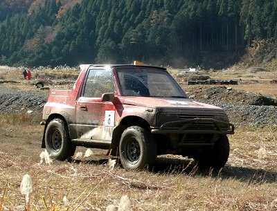 赤い色でESCUDOのロゴ入り泥除けは、純正部品では初代には無かったと記憶しているので(あやふやだけどね)、二代目って意外と派手目のコーディネートができたんだねえとあらためて感じます。うちで使っていた初代の2000用では、幅広の丈長ものは濃紺、ロゴもSマークとSUZUKIだったのです。泥除けにしゃれっ気出させても始まらないのですが、こうしてみると後姿はけっこう地味になりました。