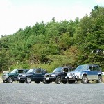 5年ほど前のイベントの様子・・・ではなく、うちの車たち(れいんさんのFB15サニーを除く)。ほんの一時期、爺ノマドとぷらすBLUEが同居していた期間があります。この頃、JB23Wも納車したばかりで、SUZUKIっずの様相を一家だけでやっているというしょーもないシーンです。これを遡ること18年くらい前がこんなんでしたから、当時から既に懲りない一族だったようです。