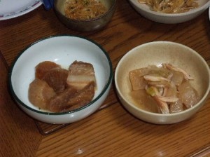 伯母に貰った大根を私も煮た後で、三種類の大根の煮物。