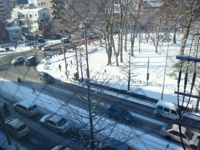 でも交通量が多いので、路地裏は歩車道ともにつるつるなのでした。地元の女の子は、なんでこんな状態の路面でもヒールの付いたブーツで平気で歩いているんだろうと、感心してます。