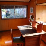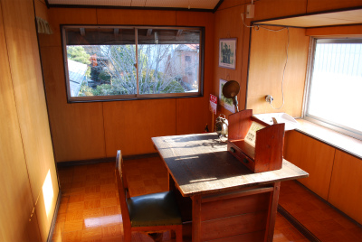 どこかに似ていたような記憶をもって生家に入ってみて思い出した。家の一階部分の基本構成が、土浦の吾妻庵に非常に似ているのでした。吾妻庵は蕎麦屋なので、厨房部分の配置が異なり比べ物にならないほど大きいものの、土間から遠くに続く座敷の配置は同じなのです。一方、石ノ森さんの生家には、土間の階上に勉強部屋が残されており、昭和10年代後半から20年代にかけて使われていた勉強机が残されています。