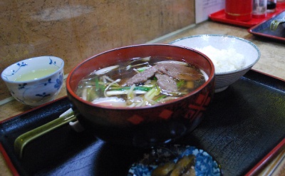 sugiさんは、5年ほど前に「狩人」に行ったことがあって、熊そばのうまさに魅了されたそうです。唐辛子の量を調節して辛味を出した汁に、やわらかめの蕎麦とともに、熊肉が入っています。この汁は一緒に出てくるご飯にかけて食うのです。蕎麦が苦手な場合は、うどんで頼むこともできます。これらは定番の献立で、予約によって注文出来値料理としては「熊どんぶり」「鹿ステーキ」「熊大トロ」などもありますが、予約したうえでさらにご主人が食材を獲ってくることが前提となるため、ちょっと手軽には食えないのかもしれません。