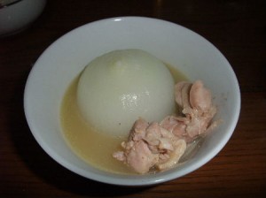 美味しそうなブログに触発された続き。新たまねぎの丸ごとスープってお料理を見て「あ、新たまねぎもあるぅ♪」と、わたし流に煮てみました。奥さんのは固形スープと白ワインでしたけど、わたしは鰹節のお出汁。具は鶏肉だけでシンプルに・・・しすぎたか?人参とか青味の野菜が入ってたほうが見た目美味しそうよね。