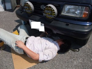 今回、後ろ姿が映されたことから、これは1990年式のヘリーハンセンであることが確認できました。決め手はスペアタイヤのスチールホイールが白塗装であったことです。