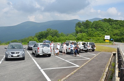 Fレイドのラウンド4、磐梯山半周と西吾妻越え170キロの燃費競争は、桧原湖周辺の標高800メートル地点でも31℃という猛暑の中、7台のエスクードによって繰り広げられました。福島県本宮市からスタート、母成峠を越えて磐梯町から猪苗代に抜け、ゴールドラインで桧原湖経由の白布峠クライム。最高で標高1400メートルまで駆け上り、一気に山形県米沢市に降りて、福島市へゴールするルート設定。途中、この暑いのに鍋焼きうどんやら激辛地獄ラーメンやら唐揚げ入りスタミナラーメンをすするという我慢比べの余興付きです。