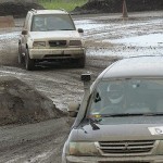 アンリミテッド予選では、コースの設定タイム53秒という基準に対して、後藤選手とエスクード(銀)は手堅く50秒を刻んできましたが、なんと川添選手のエスクード(白)は49秒をたたき出しました。これはどっちが車のことを考えているのかわからない結果です。こういうときは勢いに乗れている方が強い。耐久性はあるものの、パワーステージでは中村選手のディーゼルパジェロは歯が立たない。さらにライバルである三菱勢の廣瀬選手を三位決定戦に送り出し、決勝ラウンドは後藤・川添の一騎打ちです。