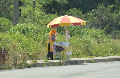 7号線を南下していると、もしもしピットなどの駐車スペースに必ずいらっしゃる。ベテランの販売員にめぐり合うと、バラの花のような盛りつけをしてくれるそうですが、残念ながらこのときは、同じ7号線沿いにある、非常にネタの良い寿司屋を目指していたため、ここで水分は補給できぬと全てスルーしてしまいました。