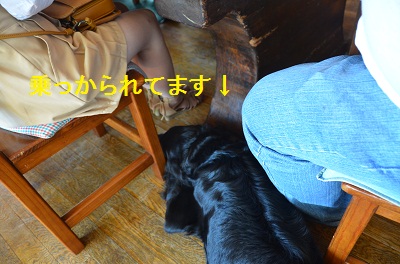 いやいや、伏せるのはかまわないけどな、人の足の上に寝そべるんじゃないよ。