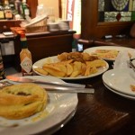 すると富士山と甲斐駒ケ岳は眺められたものの、肝心の八ヶ岳はどんよりとした雲の中。1500m以上は大荒れの天気のようです。その天候も手伝って、大泉のブル&ベアにたどり着く頃にはすっかり夜の世界で、森の中のアイリッシュパブは、晩餐に来ているお客さんでほぼ満席。でも特等席とも言うべき、カウンターの真ん中に案内してもらえて、少し早めの夕食です。