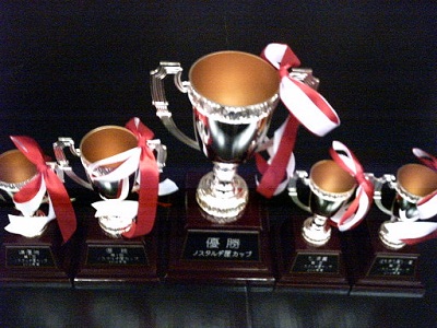 そのノスタルヂ屋カップの優勝杯と、各賞杯が出来上がったそうです。おお、どこかのBレイドなんかとは格が違うなあ。