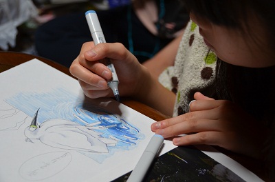 アナログとデジタル技術の融合で、四コマ漫画描いてます。この中に、買い出し品目のヒントが盛り込まれているのですが、