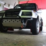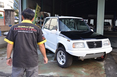 そんな経緯で、チームのみなさんが集結するまでの時間を利用し、それぞれの課題で別々の場所にて作業中の、2台のエスクードの様子も視察させていただくことができました。後藤選手の専用機とは、世羅のJXCD以来の再会で、随分とモデファイが進みました。今季のTDAから投入されている川添選手の専用機は、最新のバージョンとして初めて目にすることになります。この個体がSIDEKICKさんの愛車だったことは周知のエピソードですが、51Wなのに11W顔。このパーツは、SIDEKICKさんのこだわりだったものです。