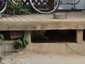 それでも誰か来るとちゃんと吠えるのはさすが番犬。但し潜ったまま(笑)