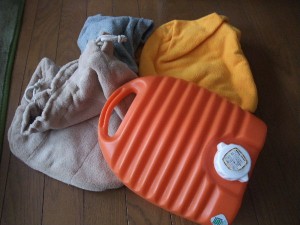 いきなりこんなに寒くならんでも。ホットカーペットは点けたけど、それでも寒そうだなぁ・・・と思ったので出してみましたヨ、湯たんぽ。