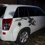 つくばーどにまつわるジンクスの一つ。初参加の人がいるときは雨。まさしく大当たりを引き当てたのは、20年乗り続けた日産テラノを退役させ、この夏からTDA4Wの三代目エスクード四型に乗り始めた、かわねこさんです。北海道在住のかわねこさんは、実家のある岩手県へ帰省するため、フェリーで新潟に上陸して関越から北関東道に乗り換え・・・と、このあたりで既に「えっ、それおかしくないですか?」と思わされるのですが、そういう経路をたどって日中栃木県に立ち寄り、夕方から茨城へやってきたのであります。