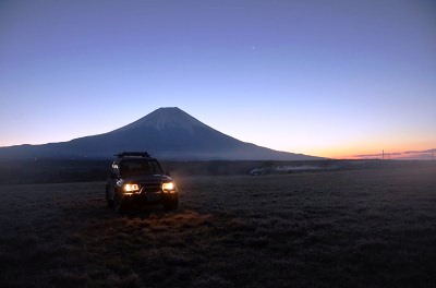 この頃、BLUEらすかるの外気温度計は氷点下2度。しかし日の出の時刻まで、まだ30分はあるため、車内に逃げ込みたい気持ちでいっぱいですが、不意に巻いてくる霧がカメラのレンズを結露させるのではないかと気が気でならない。こういうときに限って、フードの代わりになるものがないわけです。そのカメラのボディにも三脚にも、氷結した結晶が目立っていきます。