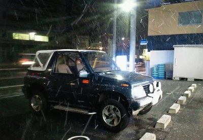 いくらかオイル上がり気味のぷらすBLUEですが、それでも四駆は四駆。凍結していなければ短いホイルベースでも安定して国見以降の登り下りのコーナーを越えてくれます。21年前の車ながら、頼もしい限りです。しかし、夕方には雪から曇りとなるハズだった仙台市内が、まだ雪。さてこのまま明日の朝まで降り続くとすると、コンバーチブルの幌屋根は一体どうなるんだろう?