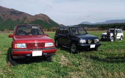 1992年式の3台。昨年、3台ともワン・オーナーのまま、新車登録から20年を走り抜け、もちろん現役で活躍しているエスクードと、ノマド、SIDEKICKです。1台で月までの距離を走るというのも尋常ではありませんが、1台の車を乗り続けるということの方が、ずっと高い価値観を持っていると思います。しかもそれぞれ、エンジンをブローさせてもユニットを載せ換え、床が抜け落ちても床板パーツを調達してレストアし、所有権を娘さんに脅かされても別のビターラ貸与で切り抜け、手放さずに乗ってくれているところが、脱帽ものです。