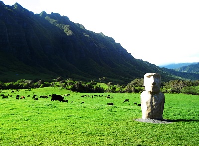 今のラパ・ヌイには森はほとんどないとも言われているし、凝灰岩にしては白っぽすぎる。しかも、西洋人が上陸した頃にはすべて倒されていたはずの像が立派に佇んでいる。
