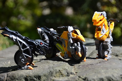 今回は、こちらのマシン趣味とは関係ない恐竜素体のロボ戦隊だから油断していたら、よりによって小型恐竜と小型恐竜の噛みつき合体でオートバイが出来ていまうという困ったアイテム。困っている割には2セット買ってしまうのも別のところで困りものです。