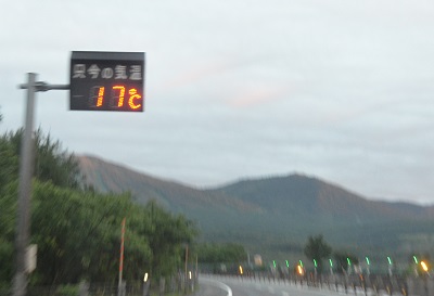 前森山にまだ夕日がさしている11日の午後7時くらい。北緯40度のあたりはなんと17℃という、ヒーターを入れたくなるような陽気でした。群馬県や埼玉県じゃまた酷暑の外気温度最高値を更新したとか、ラジオのニュースが報じていましたが、まるで別世界です。