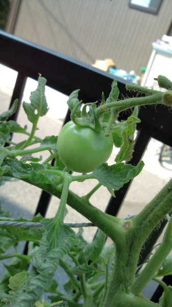 葉は相変わらずよれよれ(萎れているわけじゃなくて、丸まり加減というか・・・)なので、病気なんでしょうね。コレともう1つが食べられるだけ大きく育てば良しとしましょう。完全に枯れなかっただけでも奇跡だわ。以前に植えた時は、枝葉が生長する前に枯れてしまったので。