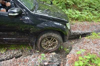 思い思いにクレバス攻略を堪能してもらえました。倒木ばかり気にしていたのが甘かったというか、クレバス越えは何処の林道でもあるもんだよとタカをくくったのが仇になったというか・・・